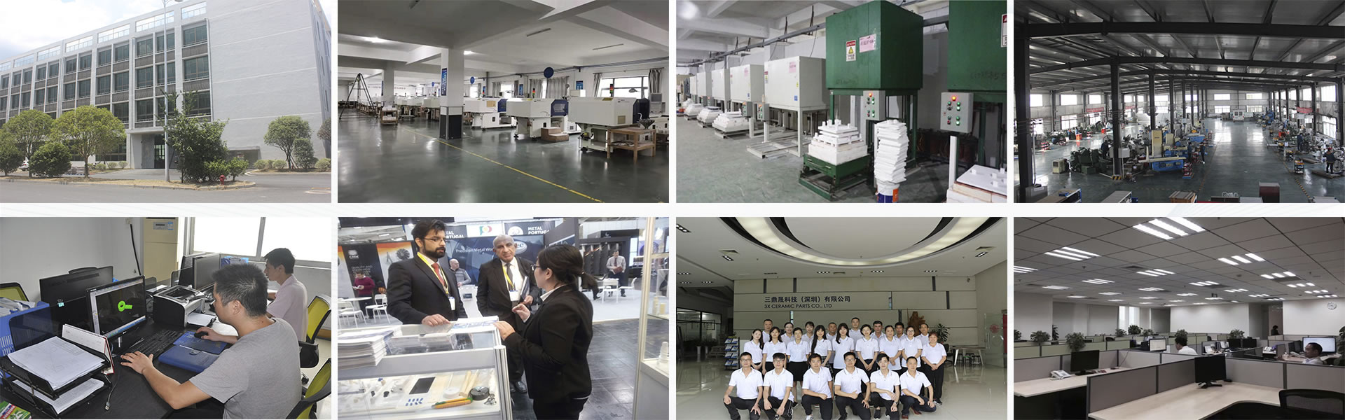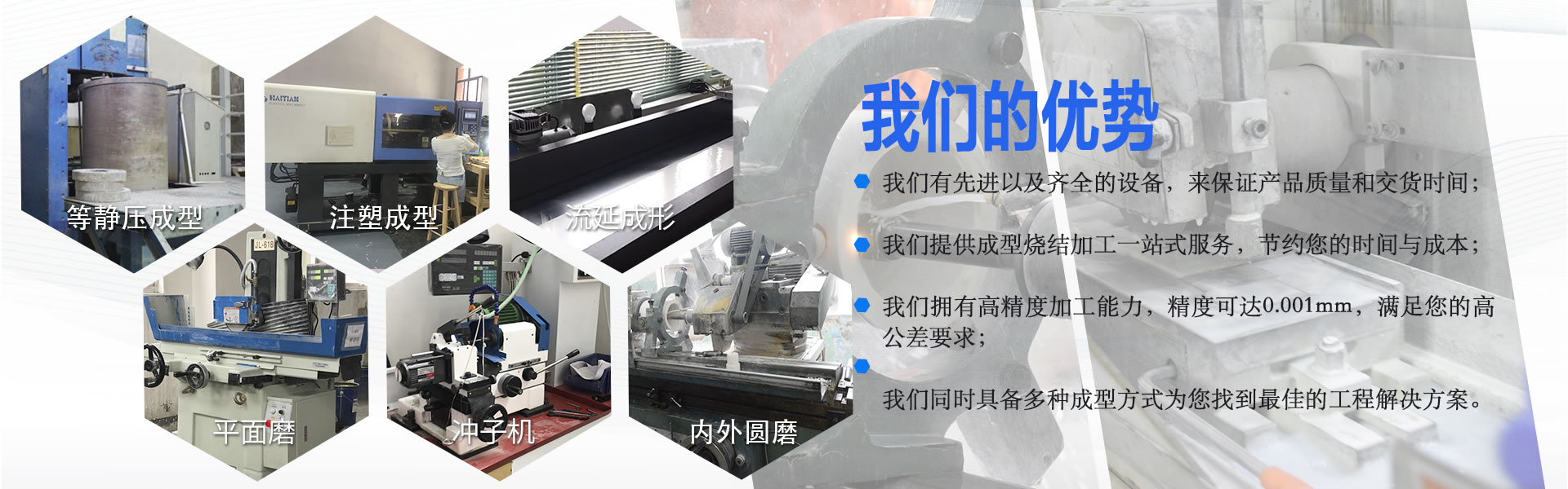 我司配备先进的成型设备包括等静压成型,干压成型,注塑成型等,烧结设备有升降炉,推板窑等,加工设备包括内外圆磨,平面磨,无心磨, 精磨, CNC精雕机, 激光切割机等, 齐全的检测设备有三丰千分尺,三丰卡尺, 三丰粗糙度检测仪, 投影仪,密度检测仪,高度规, 放大镜等。我司拥有专业工程师5名,技术骨干10多名,专业的团队致力于为客户提供更符合质量要求的产品。